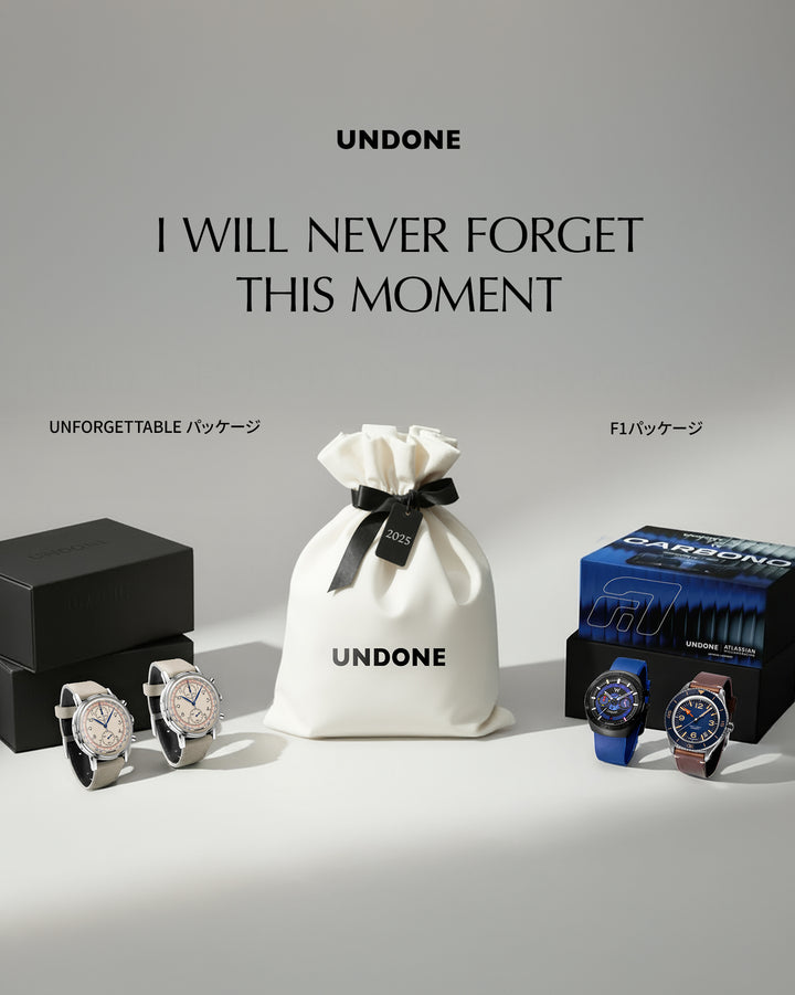 日本製ムーブメントを搭載し、企画から組み立てまで国内で完結。UNDONEのクラフトマンシップとモータースポーツの世界観が融合した、唯一無二のタイムピースです。