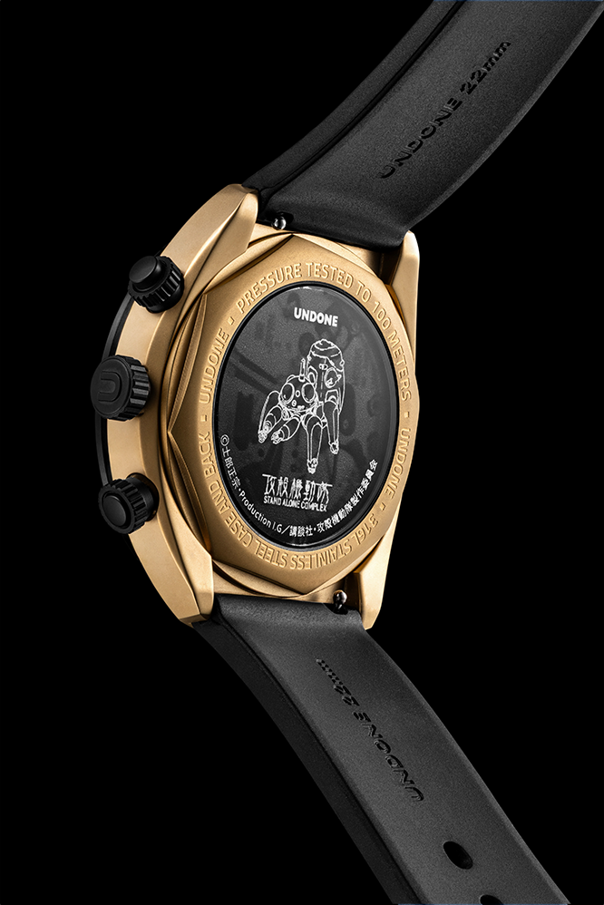 日常シーン・仕事、装備シーンを選ばないタチコマがモチーフの腕時計が登場。攻殻機動隊S.A.C.の「さよなら、バトーさん」のエピソードがコンセプトになっているブルー・イエロー・グレー3色からなる本モデルは、「人間らしさ」とは何か──身につけるたびに、好奇心や個性、そして『ゴースト』の囁きを思い起こさせてくれます。